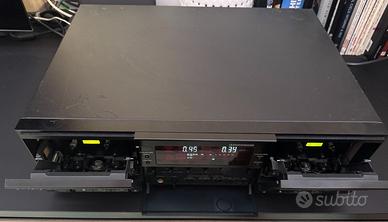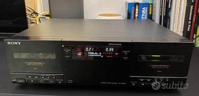 Descrizione: la Sony TC-WR890 è una piastra a cassette doppia (doppio deck) di fascia alta prodotta dalla Sony intorno al 1992 in Giappone. È un dispositivo stereo a 4 tracce, noto per le sue caratteristiche avanzate, tra cui l'auto-reverse su entrambe le piastre, il sistema Dolby HX-PRO e l'uso di 3+3 motori per prestazioni audio superiori. Caratteristiche Principali Tipo: Doppio registratore a cassette compatto, auto reverse. Velocità Nastro: 4,8 cm/s e 9,5 cm/s (alta velocità per la copia). Testine: 2 testine per registrazione/riproduzione + 2 testine di cancellazione. Motori: 2 motori per bobina (DC), 2 per capstan, 2 per assistenza (totale 6 motori per una gestione precisa del nastro). Compatibilità Nastri: Tipi I (normale), II (alto), IV (metallo). Stato attuale: oggi è un apparecchio raro, molto apprezzato dagli appassionati di Hi-Fi vintage e collezionisti per la sua qualità costruttiva. Condizione tecnica: impeccabile, perfettamente funzionante, appena revisionato. Condizione ottica: in buone condizioni, presenta solo lievi segni di usura. Note: cedo a malincuore, unico proprietario, poco usato, completamente originale. Solo ritiro di persona con possibile test di ascolto a Roma, per intenditori Prezzo NON trattabile Specifiche tecniche Type: auto reverse, double compact cassette deck Track System: 4-track, 2-channel stereo Heads: 2 x record/playback, 2 x erase Tape Type: type I, CrO2, Metal Noise Reduction: B, C Headroom Extension: HX Pro Frequency Response: 25Hz to 19kHz (Metal tape) Signal to Noise Ratio: 74dB (dolby C) Wow and Flutter: 0.06% Total Harmonic Distortion: 1.8% Input: 160mV (line) Output: 0.5V (line) Dimensions: 430 x 135 x 350mm Weight: 6.5kg