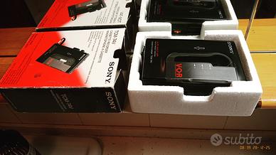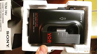 Sony TCM 74V registratore vocale portatile vintage anni 80-90 con la sua scatola originale e il suo foglietto di istruzioni.