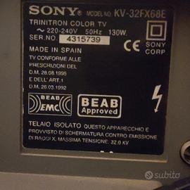 Sony Trinitron 32 pollici mod. KV-32fX68E funzionante. Caratteristiche principali Schermo piatto 32" 16:9 100 hz con tubo catodico. Misure : 87x55x58. Peso : 60kg Solo ritiro a domicilio.