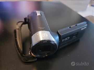 incorporato, usata veramente poco, corredata di tutto il suo pacchetto originale compresa scatola, in piú set di altre due batterie con caricabatteria esterno, borsa multitasca con sacca antipioggia.