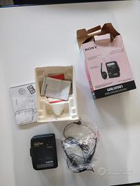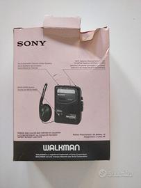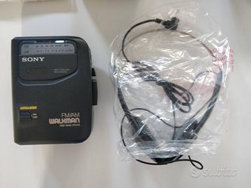 Dispositivo audio vintage Sony Walkman AVLS WM-EX302 lettore cassette anni ’80, vintage, con cuffie e scatola originale.