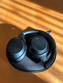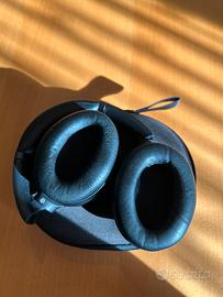 Condizini buone, leggera usura all’interno del padiglione in pelle. Incluso cavo di ricarica, custodia protettiva da viaggio, cavo jack, addattatore per aereo. Connessione sia Bluetooth che cablata. Active noise canceling.
