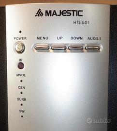 Vendo sistema home theatre Majestic 5.1 modello HTS 501, usato pochissimo e perfettamente funzionante. Ideale per trasformare il tuo salotto in una vera sala cinema,m offrendo esperienza audio surround coinvolgente per film, musica e videogiochi.