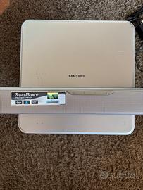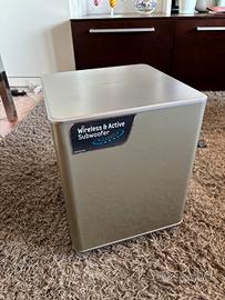 Sound bar + subwoofer Samsung (entrambi) wireless, capaci di connettersi alla TV tramite Bluetooth (escludendo completamente l'audio dagli altoparlanti integrati).