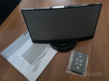 Vendo sistema di musica digitale BOSE SOUND DOCK, colore nero, completo di telecomando originale e cavo elettrico. Ideale per Ipod e dispositivi. Il suono è spaziale e veramente di qualità, come solo BOSE può offrire. Come nuovo, utilizzato pochissimo (per mancanza di tempo) e ancora nella sua scatola originale completa di imballo in polistirolo. Così sarà consegnato. Spedizione tracciabile e sicura, a spese dell'acquirente.