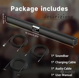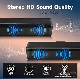 soundbar 5.1 con doppio altoparlante Wireless 2.4ghz 50w rms, per TV uscite:Aux,usb3.0,sd,Wireless, bluetooth.