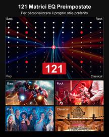 Soundbar 7.1 Controllo app Ottico/AUX/BT •【Sistema audio surround 7.1CH】: questo sistema audio surround 7.1CH per TV dispone di 3 canali audio principali per garantire voci umane chiare. Quattro altoparlanti surround e un subwoofer wireless da 6,5″ creano un campo sonoro surround più ampio (Nota: questo prodotto non supporta HDMI.) •【Altoparlanti Surround Regolabili】: La soundbar è dotata di due altoparlanti posteriori e due altoparlanti anteriori, garantendo un'accurata proiezione del suono dalla parte anteriore, posteriore e laterale, rendendo l'audio spaziale e coinvolgente. La sensazione aumenta. 13 livelli surround regolabili migliorano la tua esperienza audio surround. Questa soundbar TV porta la tua esperienza audio a un livello superiore. I due altoparlanti posteriori sono collegati a un subwoofer con 6 m di cablaggio, consentendo layout versatili e favorendo un uso efficiente dello spazio. •[Controllo APP ufficiale :si impegna a rendere la tua vita più intelligente attraverso Smart APP non solo soddisfa tutte le tue esigenze, ma ti consente anche di personalizzare il tuo stile preferito. Ottieni un'esperienza audio premium e senza interruzioni con i regolari aggiornamenti OTA. Aura A40 è dotata di un subwoofer. •[121 matrici di equalizzazione preimpostate]: l'app fornisce 121 tipi di matrici di equalizzatore preimpostate. Esplora quattro stili diversi: basso, pop, classica e rock e immergiti nell'arte dell'accordatura di precisione, avvicinandoti al tuo panorama sonoro ideale ad ogni regolazione. •【Impostazioni dell'equalizzatore a 10 livelli】: migliora la tua esperienza audio con 6 modalità EQ personalizzate: film, musica, audio, sport, gioco, notte. Ciascuno è stato messo a punto con precisione per prestazioni ottimali. Perfeziona ulteriormente il tuo ascolto con la "personalizzazione" avanzata nell'app che ti consente di personalizzare l'audio perfetto in base ai tuoi gusti e al tuo ambiente.