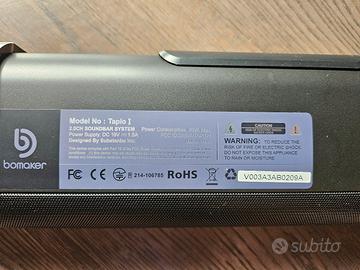 Vendo BOMAKER Tapio I Mini Soundbar Bluetooth 5.0 Wireless, 16'' con DSP avanzato supporta 3 modalità EQ/ 3D /Ottico/AUX/USB, Ideale per PC/TV, Montabile a parete (Senza batteria, richiede un alimentatore).