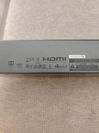 JBL BAR 5.1 la soundbar con subwoofer e tecnologia sonora MultiBeam che porta comodamente a casa tua un'esperienza cinematografica unica senza bisogno di altoparlanti o cavi aggiuntivi Grazie a 550 Watt di potenza di uscita del sistema, a un suono Surround panoramico e a un subwoofer wireless da 10" con bassi potenti e definiti, l'esperienza dell'home cinema raggiunge alti livelli Il Bluetooth, il WiFi integrato e la compatibilit con Chromecast e Airplay 2 consentono di trasmettere in streaming musica e contenuti online con un suono avvolgente e con un semplice tocco Dotata di HD 4K Pass-through con Dolby Vision, la soundbar JBL offre un'alta risoluzione video associata ad un suono coinvolgente e potente. completo di scatola e telecomando.
