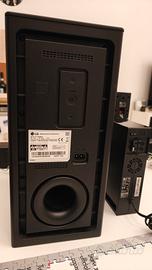 vendo soundbar lg con subwoofer e casse posteriori per effetto cinema. la soundbar non presenta segni di usura, e' in ottimo stato. vendo a euro 169 con aste per casse hama allungabili, 129 senza aste