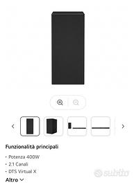 Come da titolo vendo soundbar Lg + subwoofer perfettamente funzionante da 400 w circa
