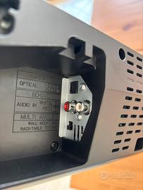 Potenza 80 watt, si puó collegare tramite cavo rc, cavo ottico (incluso da 1 m) e bluetooth.