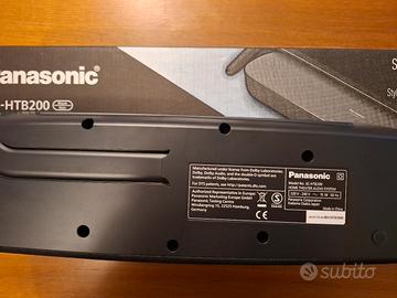 Soundbar Panasonic SC-HTB200 Condizioni perfette. Dimensioni compatte: lunghezza 45 cm; altezza 5,1 cm; profondità 13,5 cm 2 canali stereo da 80W; 3 ingressi digitali: HDMI arc, ottico Toslink, Bluetooth; Speaker da 10 x 4 cm Full Range x2, Bass Reflex posteriore; Dolby Digital, DTS Digital Surround; Con telecomando, scatola e imballo originali