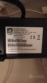 Vendo soundbar Philips TAB5105/12, perfettamente funzionante. Soluzione semplice per migliorare l’audio della TV, ma non solo. Caratteristiche tecniche: Potenza: 15W Alimentazione: DC 15V – 1.6A Design compatto, ideale sotto la TV o a parete Connettività: HDMI per collegamento diretto alla TV Bluetooth integrato 👉 Oltre alla TV, puoi collegare facilmente smartphone, tablet o PC per ascoltare musica, podcast o qualsiasi contenuto audio Condizioni: - Perfettamente funzionante - Buone condizioni estetiche - Normali segni d’uso Ideale per: migliorare l’audio della TV ascolto musica wireless utilizzo quotidiano semplice In dotazione come da origine: soundbar, cavo alimentazione, cavo audio, cavo hdmi, telecomando, batterie Per via della lunghezza, invio con spedizione personalizzata BRT