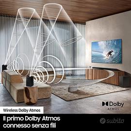 Descrizione: Design Ultra Slim: design che si fonde perfettamente con il tuo TV o Wireless Dolby Atmos: il primo dolby atmos connesso senza fili o Q-Symphony: armonia perfetta tra TV e soundbar o Vero audio a 3.1.2 Ch : suono più potente da ogni direzione Caratteristiche principali: o Tipologia: Soundbar o Connettività: Bluetooth, Wi-Fi o Configurazione audio: 3.1.2 canali o Potenza di uscita: 330 Watt o Colore: Nero o Decoder incorporati: 3D Sound,DTS Virtual:X,Dolby Atmos,Dolby Digital Plus.