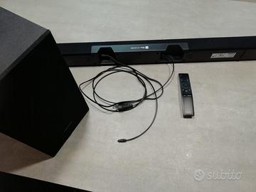 con subwoofer 6.5”. Acquistata nuova a 110 euro, vendo a prezzo ribassato per lievi segni di utilizzo, perfettamente funzionante. Segnale audio ottico, porta usb per chiavetta e funzione Bluetooth. Con telecomando.