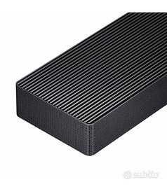 Audio ideale a 3.1.2 canali Un suono accattivante che dà vita all'intrattenimento Completa la tua esperienza immersiva di ascolto con una soundbar dotata di 3 canali anteriori, 1 subwoofer e 2 canali con emissione verso l’alto. Inoltre, è dotata di un subwoofer separato compatto da 8 pollici per bassi più profondi.Orientabile Gli altoparlanti sono progettati per funzionare sia come canali frontali sia come canali con emissione verso l’alto, regolando automaticamente la direzione di uscita in base al posizionamento della soundbar.Ottieni bassi più profondi con il nostro nuovo subwoofer, ancora più compatto. Si integra in ogni ambiente con la massima discrezione e assicura prestazioni eccezionali. Wireless Dolby Atmos Audio cinematografico integrato Un audio surround 3D di altissima qualità. Con la tecnologia Dolby Atmos integrata in modalità wireless nella soundbar, potrai distinguere nitidamente ogni suono da qualunque direzione e vivere ogni film da protagonista.Q-Symphony TV e soundbar in perfetta armonia Con Q-Symphony, l'AI separa la voce dai suoni di sottofondo per riprodurli utilizzando il canale più indicato. In questo modo, i dialoghi saranno più nitidi e l'audio surround 3D sarà ancora più avvolgente, con gli altoparlanti del televisore e la soundbar che lavorano in armonia.