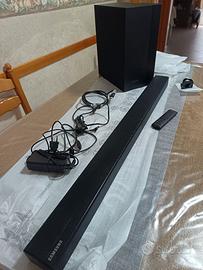Vendo come nuova per non utilizzo Soundbar Samsung K450, canali 2.1 Potenza Watt in uscita 300, subwoofer wireless, Dolby Digital, DTS Surround, Surround Sound Expansion, 3D Video Pass, BT App , connessione Bluetooth, HDMI ARC, HDMI cec, Optical in, USB Host,,completa di cav,i staffe per parete e telecomando