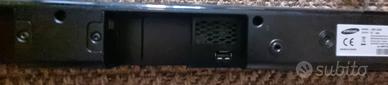 soundbar samsung con subwoofer, telecomando bluethoot. La barra è collegabile ad ogni fonte anche via cavo.