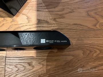 Samsung con subwoofer modello HW-F450 . Una soundbar 2.1 con subwoofer wireless, potenza fino 280 W, Dolby Digital e DTS, connessione Bluetooth + HDMI ARC + ottico, con design compatto per l’utilizzo con TV e film.