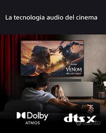 Vivi un'esperienza avvincente con l'audio surround 3.1.2 canali, grazie a Dolby Atmos e DTS:X per un effetto cinematografico. La soundbar e il subwoofer si combinano per riempire la tua stanza di un suono immersivo, mettendoti al centro di ogni scena.