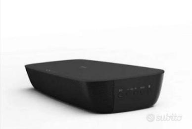 Potenza di uscita RMS, Canale frontale, 40 W per canale (6 Ohm, 1 kHz,10% THD). Potenza totale modalità stereo RMS, 80 W. cavo ottico nuovo in regalo misure:450 x 51 x 135 mm peso 1,6 kg NON SPEDISCO