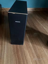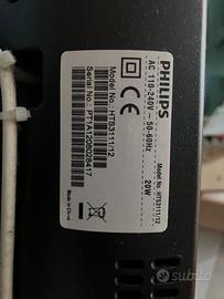 Soundbar e subwoofer di Philips con cavo ottico di collegamento e staffa di fissaggio a muro