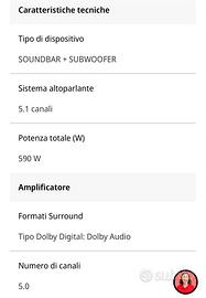 SOUNDBAR + SUBWOOFER JBL BAR 500 5.1 canali, Potenza Max 590 W, Cassa wireless, Nero