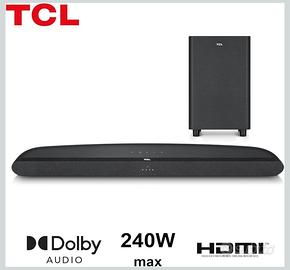 TCL TS6110, Soundbar per TV con Subwoofer Wireless, Bluetooth (32-inch Speaker, Dolby Audio, HDMI ARC, Montaggio a parete, Telecomando, tre modalità di suono), Nero, 240w