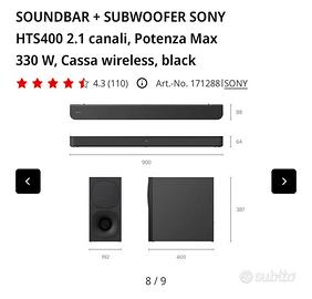 Vendo soundbar sony per passaggio a categoria superiore Funziona perfettamente