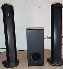 come da titolo vendo soundbar ultimea con subwoofer e cassa che possono essere posizionate sia a colonna come da foto che in orizzontale completo di cavi alimentazione più cavo ottico da collegare alla tv e telecomando.