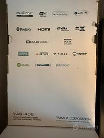 Vendo soundbar YAMAHA Musiccast 400 Yas 408 completa di subwoofer e telecomando, in condizioni praticamente perfette. Ecosistema MusicCast per riprodurre musica in rete e godere di un suono multiroom in combinazione con altri dispositivi Yamaha.