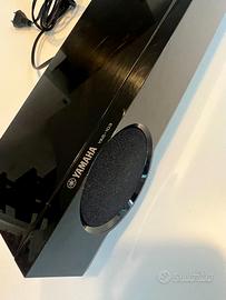 Vendo soundbar YAMAHA modello YAS-103 con le seguenti caratteristiche: Dimensioni (L x A x P mm)890 X 109 X 121 mm (with stands/brackets); 890 X 91 X 115 mm (without stands/brackets), 35” x 4-1/4” x 4-3/4” (with stands/brackets); 35” x 3-5/8” x 4-1/2” (without stands/brackets) Peso8.8 lbs.; 4.0 kg WooferSubwooferDimensioni (L x A x P mm)PesoInput / OutputDigital OpticalDigital CoaxialAnalog AudioSound TechnologySurround TechnologyUniVolumeAudio FormatsDolby DigitalDolby Pro Logic IIDTSConnectivityWireless Music StreamingBluetooth Version/ProfileOther FeaturesApp ControlTV Remote RepeaterLearnig Function Sistemi surround frontali GeneralPotenza d'uscita(Front L/R) 30 W + 30 W (6 ohms, 1 kHz, 10 % THD) (Subwoofer) 60 W (3 ohms, 100 Hz, 10 % THD) Consumo22 W Assorbimento energetico in stand-by0.5 W WooferDual 6.5 cm (2-1/2”) full range cone SubwooferDual 7.5 cm (3”) cone Input / OutputDigital Optical2 in Digital Coaxial1 in Analog Audio1 in Sound TechnologySurround TechnologyAIR SURROUND XTREME UniVolumeYes Audio FormatsDolby DigitalYes Dolby Pro Logic IIYes DTSYes ConnectivityWireless Music StreamingYes (with Bluetooth) Bluetooth Version/ProfileVer. 2.1 + EDR / A2DP Other FeaturesApp ControlYes TV Remote RepeaterYes Learnig FunctionYes VENDO CORREDATA DI SOLO TELECOMANDO E CAVO ALIMENTAZIONE - NESSUNA SPEDIZIONE - NESSUNA CONFEZIONE - NESSUNA GARANZIA IN ATTO - RITIRO A CARICO DELL'ACQUIRENTE