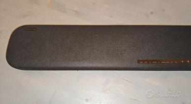 Utilizzata veramente poco, in buone condizioni estetiche e ottime condizioni funzionali. Completa di telecomando e cavo di alimentazione. Essenziale ma senza risparmio. Godete dell'impareggiabile tradizione sonora di Yamaha per tutti i vostri film, musica e videogiochi preferiti - il tutto da una soundbar che si integra con discrezione davanti alla TV o ruotata a parete. L'integrazione del controllo vocale Alexa consente di controllare la soundbar, i dispositivi smart home e gli acquisti su Amazon con semplici domande. La configurazione è un lampo e richiede una semplice connessione alla vostra TV, mentre il Bluetooth® consente di riprodurre la musica e molto altro senza fili. - Il controllo vocale Alexa è integrato per controllare la soundbar, i dispositivi smart home, la musica e molto altro ancora - Doppio subwoofer integrato per bassi profondi dalla sola soundbar - Clear Voice per una migliore chiarezza dei dialoghi - Suono surround 3D virtuale DTS® Virtual:X™ - Streaming Bluetooth® per la musica e i podcast - Specifiche Prodotto: YAS-109 Soundbar Alexa integrata, streaming Bluetooth per musica e podcast - Driver: L/R anteriore: cono da 5,5cm x2; tweeter: cupola da 2,5cm x2; subwoofer integrato: cono da 7,5cm x2 - Potenza di uscita: 120W - Consumo: 30W (nominale), 4,3W (Voice Control Ready) - Ingresso / Uscita: HDMI; Ottico digitale; Subwoofer output - HDMI: 4K e 3D Pass through; ARC; CEC - Tecnologia del suono: surround 3D DTS Virtual:X; Modalità DSP; Dolby Digital - Formati audio: WAV (solo formato PCM) / FLAC / ALAC / MP3 / WMA / MPEG-4 AAC - Versione Bluetooth: 4.2 - Contenuto: Soundbar, cavo di alimentazione, istruzioni - Dimensioni (LxAxP): 89 x 5,3 x 13,1 cm - Peso: 3,4 kg - Colore: nero