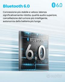 vendo cuffiette usate per qualche ora di buonissima qualità e con tante funzionalità adatte a diversi tipi di persone, ritiro oppure spedizione tutto subito, eventuali domande in privato Specifiche SoundPEATS C30: La cancellazione attiva del rumore ibrida raggiunge fino a -52 dB, con modalità ANC Adattivo attivata di default. Tramite l'app, è possibile attivare la modalità ANC Ambientale, personalizzando tre scenari: Interno, Esterno e Trasporti. Audio di qualità con driver in titanio da 12 mm, supporto per LDAC fino a 990 kbps e Hi-Res Audio Wireless (96 kHz/24 bit). La connessione Bluetooth 6.0 offre stabilità e bassa latenza di 54 ms in modalità gioco. L'autonomia è sorprendente: fino a 10 ore di riproduzione con ANC disattivato e 52 ore totali con il case di ricarica. La ricarica rapida consente 3 ore di musica con soli 10 minuti di carica. In termini di chiamate, sono presenti 6 microfoni ENC per una trasmissione vocale chiara, con un design antivento efficace fino a 45 km/h. Elegante e ispirato alla natura, il design presenta dettagli in metallo lucido e una forma intrauricolare ergonomica per un comfort duraturo.