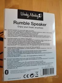 Vendo altoparlante Rumble della Wacky Monkey, in ottime condizioni. È compatto e facile da trasportare, regalato l'anno scorso MAI USATO, se non per tenere in carica le batterie.