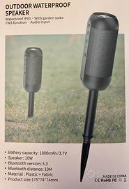Componenti inclusi CASSA BLUETOOTH, SUPPORTO DA GIARDINO, CAVO DI RICARICA USB