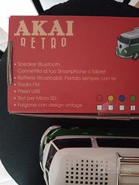Speaker Bluetooth modellino Van anni 70 in ottime condizioni. Dual speaker, Bluetooth, radio FM, SD card, USB, AUX. Funziona a batteria e a corrente senza la necessità della batteria (estraibile). No spedizione.