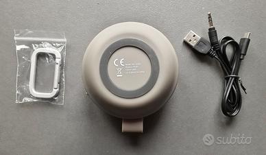 Sono inclusi moschettone in alluminio e cavetto USB/micro USB/AUX-IN.