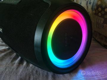 Potenza assurda, 130W ideale per party in casa/piscina/all'aperto. Presenti 2 LED circolari alle estremità con diversi giochi di colore.