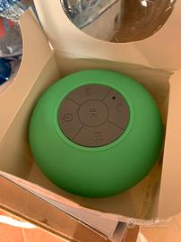 Vendo speaker wireless Bluetooth per ascoltare la musica in doccia. È impermeabile e si attacca alla parete con una ventosa. Ricaricabile con adattatore per la ricarica usb incorporato.