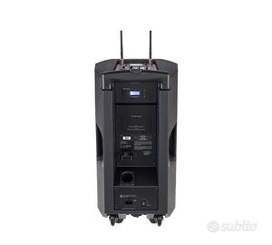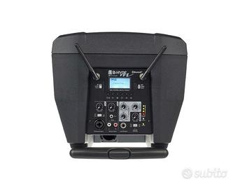 B·Hype M fonde le prestazioni acustiche professionali della famiglia B-H con la versatilità più avanzata di un PA portatile completa dotata di un sistema microfonico wireless, lettore multimediale audio con connessione Bluetooth, scheda SD e porta USB, una batteria di lunga durata, ruote e una maniglia superiore retrattile: tutto ciò che serve per performance professionali in movimento. Una soluzione perfetta per spettacoli itineranti, spettacoli di busker, nouveau cirque, spettacoli di ogni tipo ambientati in luoghi all'aperto o non convenzionali. Il sistema è dotato di1 driver a compressione da 1" e un woofer da 10". La sezione di input consente all'utente di collegare fino a tre ingressi cablati, un microfono wireless e diversi ingressi multimediali (incluso Bluetooth). Gli utenti possono anche collegare l'uscita audio a un secondo altoparlante. La sezione di controllo è dotata di un equalizzatore e di una funzione priorità CH1 / RF che attenua il livello di ogni canale, tranne il Canale 1 ed i radio microfoni per un effetto ducking automatico e regolare. Il cabinet robusto e compatto (solo 12,5kg) è dotato di ruote e 3 maniglie (1 per lato e 1 estraibile nella parte superiore). Una flangia per stativo da 36mm consente anche l'uso su un supporto per diffusori.