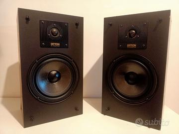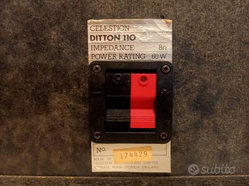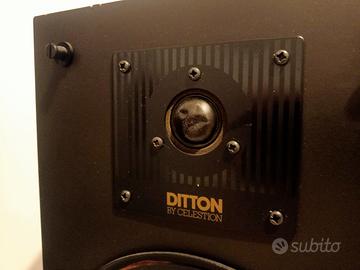 Vendo in blocco coppia di magnifici speaker Hi-fi vintage anni '80 Celestion Ditton 110, made in England, complete di eleganti stand con basi in vetro, tronco in metallo/legno e piedini antivibrazione regolabili.