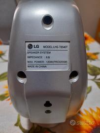Set di 5 speaker LG dal design moderno. - Colore grigio e argento. - Logo LG visibile su ogni speaker.