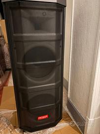 vendo speaker, ottima per il karaoke, potente, con diversi attacchi, e regolazioni. Portatile, con radio integrata, perfetta, va benissimo ed è forte il volume come cassa per le feste Ritiro a mano presso mio domicilio, non tratto il prezzo, pagato 350