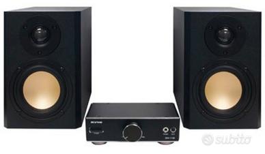 Sistema audio a 2 vie, compreso di amplificatore e cavi. Woofer e amplificatore come da immagini.