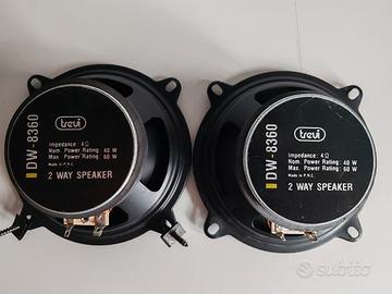 vendo coppia speakers trevi car audio perfettamente funzionanti, 2 vie, watt totali 80W. Made in Italy.