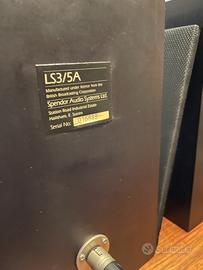 Vendo dalla mia collezione coppia di casse Inglesi Spendor LS3/5A, Serie utilizzata nelle sale di registrazione in Inghilterra anni 80/90 . Stato delle casse perfetto nere con frontali in tra rigida perfetti neri e loghi Spendor originali. Suono perfetto stato perfetto introvabili in queste condizioni, Casse da scaffale ma con una padronanza del suono da sembrare tre volte più grandi solo per estimatore degli oggetti che hanno fatto la storia dell' Hi Fi Componenti originali Kef dell'epoca. Preferirei ritiro a mano con ascolto in loco. Casse introvabili in questa condizione pari al nuovo.