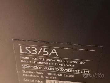 Vendo coppia di casse Inglesi che si utilizzavano nelle sale di registrazione in Inghilterra anni 80/90, Spendor LS3/5A. Casse da estimatori degli oggetti che hanno fatto la storia dell' Hi Fi, preferirei ritiro a mano con ascolto in loco in modo che ci sia più trasparenza possibile. Le casse come si vede dalle foto hanno ancora l'imballo originale,in tutto il tempo che non sono stati utilizzate sono state riposte nella loro confezione...