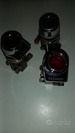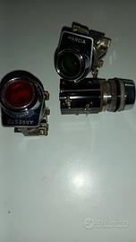 Spie e pulsanti da pannello con indicazione: ARRESTO - MARCIA vintage in acciaio, rosse e verdi, prodotte dalla ditta Dacis , Damiani & Ciappi. Perfettamente conservate. Solo spie euro 9 Spie/ pulsanti euro 13